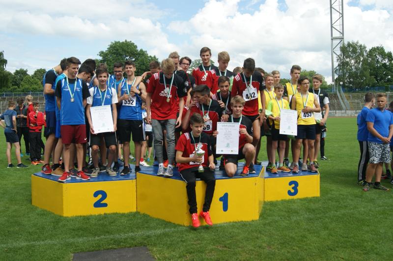 Mit Rekordergebnis von 7494 Punkten Silber erkämpft!erstellt am: Donnerstag, 23 Juni, 2016Torgau / Chemnitz Zum vierten Mal in Folge standen die Jungen der WKIII des Johann Walter Gymnasiums Torgau im Landesfinale der Leichtathleten des Bundeswettbewerbes "Jugend trainiert für Olympia". Nach den guten Ergebnissen der Vorrunden und dem Erfolg im Vorjahr (Bronze) waren die Erwartungen hoch. Aber ein Blick auf die Meldelisten verriet (acht Mannschaften, unter anderem alle drei Leistungszentren Leipzig, Dresden, Chemnitz hatten gemeldet), es wird ein schwerer und enger Kampf um die Medaillen. Des weiteren bot der Zeitplan einige Probleme. Gleich zu Beginn starteten der Ballwurf und Weitsprung zeitgleich. Für die Betreuer ein heftiger Spagat! Doch die Jungs zeigten Charakter und kämpften hervorragend. Im Ballwurf begannen alle drei Sportler (Eric Stengl 71,0m!!!, Moritz Schäfer 65,0m und Jacob Stock 60,0m) mit persönlichen Bestleistungen und setzten Ausrufezeichen! Damit lag das JWG in der Zwischenwertung auf Platz 2! Im Weitsprung und im darauf folgenden Hochsprung lief es nicht optimal. So musste Tom Merseburg vor seinem letzten Sprung (bis dato 5,38m) den 75 Meter- Lauf absolvieren und Theo Melichar nach übersprungenen 1,61 Meter am Staffellauf 4 x 75 Meter teilnehmen und danach den Wettkampf fortsetzen. Nun lagen die Jungs auf dem vierten Platz, hinter dem Sportgymnasium Chemnitz, der Sportoberschule Dresden und dem Käthe-Kollwitz-Gymnasium Zwickau. Mit den sehr guten Sprintergebnissen über 75 Meter ( L. Kentzsch 9,59 s; T. Freymuth 9,59 s) und der Bestleistung über 4 x 75 Meter in 36,46 Sekunden (Kentzsch, Döbelt, Freymuth, Melichar) festigten die Jungen ihren Platz hinter Zwickau und bauten den Vorsprung zum Gymnasium aus Niesky (Vorjahressieger) aus. Auch die "Kugelstoßer" mit Lukas Winkler 11,41m und die persönlichen Bestleistungen von Jacob Stock 10,42m sowie Moritz Schäfer 10,32m brachten 1014 Punkte ein. Einen Glanzpunkt setzten die 800 Meter - Läufer um Theo Melichar PBL 2:15,41 Minuten, Luc Peter Pampel PBL 2:25,0 Minuten und Julius Döbelt 2:27,38 Minuten. Theo lief die schnellste Zeit aller 800 Meter - Läufer der Jungen WKIII . Die elf Bestleistungen waren der Grundstock für das Spitzenergebnis von 7494 Punkten und brachten damit in der Endabrechnung die Silbermedaille der nicht Sportorientierten Schulen.
