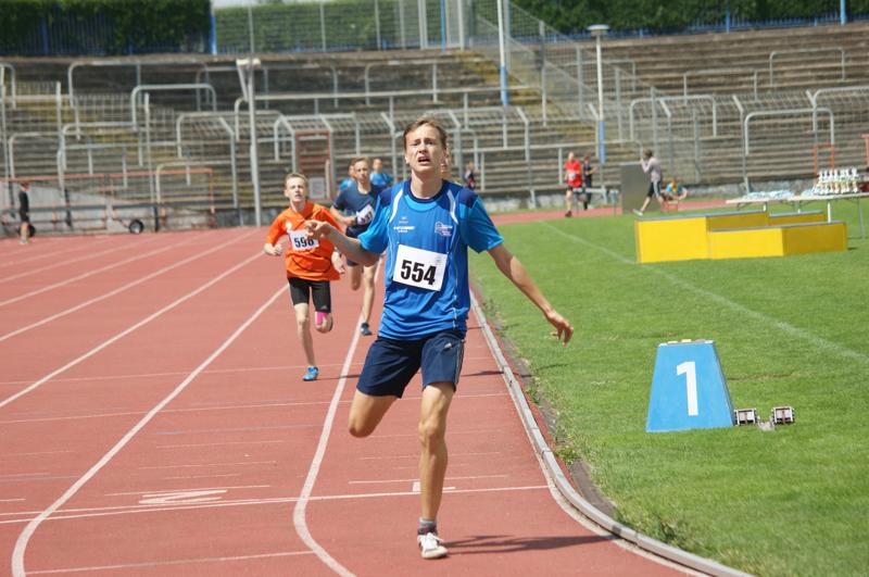 B1: Die Mannschaft des Johann Walter Gymnasium Torgau h. R.v.l.: Sportlehrerhelfer Manuel Eckert, Lukas Winkler, Eric Stengel, Jacob Stock, Theo Melichar, Moritz Schäfer, Julius Döbelt, v.R.v.l.: Tom Merseburg, Lucas Kentsch, Toni Freymuth, Luc Peter Pampel, Niklas Harm, B2.: Siegerehrung WKIII Jungen JTO Leichtathletik 2016 in Chemnitz B3.: Theo Melichar im Ziel seines überragenden 800 Meter Laufes in 2:15,41 Minuten