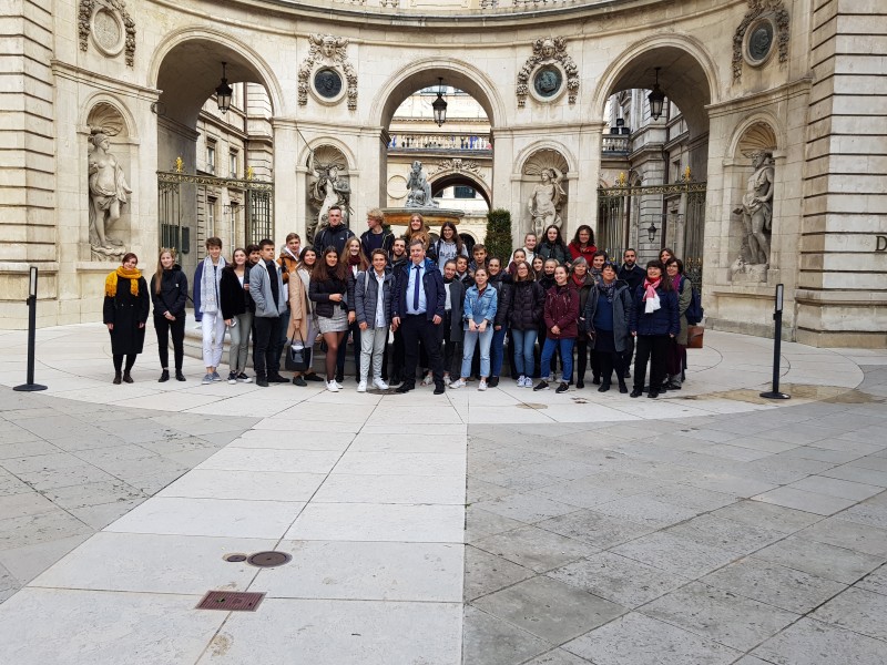 „Es lebe die deutsch-französische Freundschaft!“erstellt am: Dienstag, 26 November, 2019Unter diesem Motto erlebten fünf SchülerInnen sowie zwei Lehrerinnen des Johann-Walter-Gymnasiums – gemeinsam mit Partnern aus Leipzig und Lyon – fünf ereignisreiche Tage in der französischen Stadt an der Rhône und der Saône im Rahmen eines binationalen Treffens vom 6.-10. November 2019. Austragungsort war unter anderem die CSI – die Cité Scolaire Internationale – eine internationale Schule. Das Thema, welches im Zentrum der Begegnung stand, lautete: Widerstand in Deutschland und Frankreich 1933-1945: Gemeinsamkeiten und Unterschiede. Es stand unter der Schirmherrschaft der Carl und Anneliese Goerdeler-Stiftung und war ebenso der Städtepartnerschaft Leipzig – Lyon sowie einer Förderung durch das Deutsch-Französische-Jugendwerk zu verdanken. Die Schüler der Rahn-Education Fach-Oberschule Leipzig, des Torgauer JWG und der CSI hatten sich im Vorfeld mit diesem Thema intensiv beschäftigt und Präsentationen erarbeitet. Dabei hieß es immer: La coopération! Die Schüler fanden schnell eine gemeinsame Gesprächsbasis, zumal durch persönliche Kontakte in den Gastfamilien und gemeinsam verbrachte Freizeit das Eis schnell gebrochen war. Dabei profitierten sie gegenseitig von ihren Fremdsprachenkenntnissen und lernten viele neue Begriffe dazu. Besonders eindrucksvoll waren die Besichtigung des ehemaligen Gefängnisses Montluc, in welchem zahlreiche Widerstandskämpfer vor ihrer Verurteilung bzw. Hinrichtung inhaftiert waren, Stätten der Résistance, der französischen Widerstandsbewegung , ein Abend im Goethe-Institut von Lyon sowie ein Empfang im Lyoner Rathaus durch den stellv. Bürgermeister, wo die Schüler einen Vortrag zu dem Deutschen Klaus Barbie, dem sog. „Schlächter von Lyon“, hörten und einen Einblick in den schwierigen Umgang mit Schuld bekamen. Dem Workshop schloss sich ein gemeinsames Essen im Rathaus mit Köstlichkeiten der französischen Küche an. Während und zwischen den verschiedenen Aktivitäten kam es immer wieder zu Diskussionsrunden, auch im Zusammenhang mit der Eröffnung einer Ausstellung der Gedenkstätte Deutscher Widerstand in Berlin - „Was konnten sie tun?“ - in der Lyoner Schule. Als besonders authentisch wurde von den Schülern wahrgenommen, dass zwei Enkel des bekannten ehemaligen Leipziger Oberbürgermeisters und aktiven Widerständlers Carl Friedrich Goerdeler das gesamte Treffen begleiteten und den Schülern persönliche Eindrücke und Erinnerungen der Familie im Umgang mit ihren schmerzvollen Erfahrungen vermitteln konnten. Ein Dankeschön gilt an dieser Stelle allen Teilnehmern, aber genauso der Moderatorin und Organisatorin auf französischer Seite, Madame Gabrielle Girel, sowie der Schulleitung der CSI, welche auch die Räumlichkeiten und ein Essen in der Schulkantine zur Verfügung stellten. Ebenfalls möchten wir uns beim Deutsch-Französischen Jugendwerk für die finanzielle Unterstützung dieses Projektes bedanken. Für die Vorbereitung der Präsentationen stattete Frau Kohlhaas vom DIZ Torgau die SchülerInnen des JWG mit Material und vielen Informationen zur Rolle Torgaus während des Zweiten Weltkriegs aus, auch an sie geht ein herzliches Dankeschön.