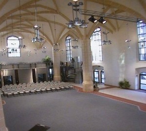 Die Alltagskirche, in der sich heute die Aula der Schule befindet