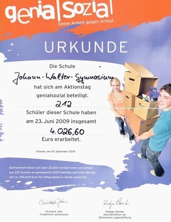 Unsere Schule beteiligte sich auch in diesem Jahr am Projekt "Sozial Genial" und konnte einen Betrag von 4026,60 € erzielen. Das ist im Landesdurchschnitt ein ausgezeichnetes Ergebnis!