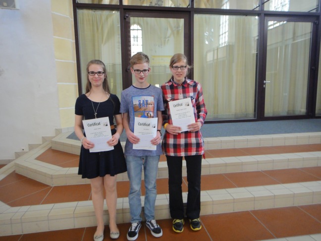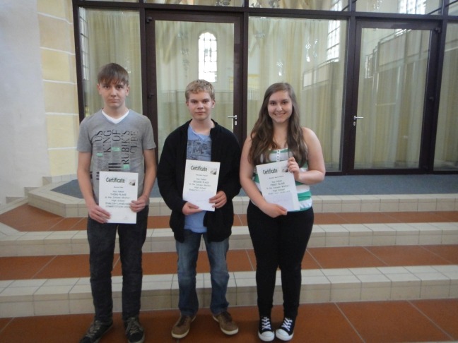 Spracholympiaden 2014erstellt am: Mittwoch, 4 März, 2015Die alljährlich stattfindenden Olympiaden der modernen Fremdsprachen fanden am 20.05.2014 ihren Höhepunkt. Nachdem die Schüler ihr Wissen in Englisch, Spanisch, Französisch und Russisch unter Beweis gestellt hatten, konnten sie nun geehrt werden. Die Schüler, die alle Teilbereiche wie Lesen, Hören, Schreiben und Sprechen mit besonders guten Leistungen absolviert hatten, erhielten Urkunden sowie eine Anerkennung in Form von Büchergutscheinen von der Schule. Allen Preisträgern herzlichen Glückwunsch. J. Henke Die Preisträger sind: