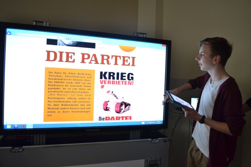 IDEEN BEWEGEN – Das digitale Klassenzimmererstellt am: Dienstag, 3 März, 2015Das Konzept des JWG Torgau wurde ausgewählt Vor 9 Wochen erhielten wir die sehr freudige Nachricht, dass unser Konzept „Die mediale Welt als Mittel der Selbstbetrachtung und -findung der persönlichen Individualität““, basierend auf den Inhalten des Fächerverbindenden Grundkurses „Künstlerische Medien“, für die Teilnahme an dem Wettbewerb „IDEEN BEWEGEN – Der Wettbewerb zur digitalen Schule“ ausgewählt wurde. Die Initiative DIGITALE BILDUNG NEU DENKEN initiiert hiermit im gegenwärtigen Schuljahr ein praxisorientiertes Programm, wodurch das digitale Klassenzimmer zur Realität wird. Sie engagiert sich bundesweit für Schulen und macht moderne Medien im Kontext von Lehr- und Lernvorgaben direkt für uns alle erlebbar. Das bedeutete für uns, dass wir für den Projektzeitraum von nunmehr 6 Wochen alles, was wir für die Umsetzung unserer digitalen Unterrichtsidee benötigten, leihweise und kostenfrei zur Verfügung gestellt bekamen. Die IT-Ausstattung besteht konkret aus einem Klassensatz von 30 Tablets, einem Notebook, zwei Tablets für die betreuenden Lehrer, einem interaktiven 65-Zoll-Display, Access Points, einem Allshare Cast Dongle, Drucker und Software, also einer kompletten Klassenzimmerausstattung (Leihstellung SAMSUNG SCHOOL SOLUTION). Der Gesamtwert der Anlage beträgt 20.000 Euro. Der Einsatz dieses Equipments ist sehr attraktiv, weil es aufgrund seiner Multifunktionalität viele Potenziale im Unterricht bündelt (Bild 1). Im Rahmen des für die Gymnasiale Oberstufe konzipierten Fächerverbindenden Grundkurses „Künstlerische Medien“ wählten alle 50 Schüler der Klasse 11 selbstständig ein Thema aus ihrem Interessensbereich. Gleichzeitig formulierten sie erste Überlegungen hinsichtlich des zu erstellenden Mediums. Hierbei hatten sie die Möglichkeit, entweder ein Print-, audiovisuelles oder digitales Medium zu kreieren. Aufgrund der hohen Teilnehmerzahl, der Kürze der Projektzeit und der Komplexität der Aufgabenstellung wurde den Jugendlichen angeboten, je nach Wunsch auch in Teams zusammenzuarbeiten. Die benannten Sujets übertrafen gleich zu Beginn meine Erwartungen. „Einfach leben“, „Kinderaugen“, „Anime-Heroes“, „During Decay – Die Biografie einer Band“, „Manga-Zeichnungen“, „Vergangenes – heute“, „Schönheitswahn“, „Graffitis vs. Streatart“, „Redewendungen und Lebensweisheiten – Wort für Wort“, „Natur im Sonnenlicht“, „Torgau mit allen Sinnen wahrnehmen“, „Gesichter eines Handicaps – Down-Syndrom“, „Tagebuch eines Pokerface“, „Blickwinkel“, „Schaurig-helle Gedanken“ – all dies sind nur einige der Themenstellungen, die von den Jugendlichen genauer betrachtet werden wollten (Bild 2). Hierzu recherchierten sie nuanciertes Informationsmaterial. Dieses bildete die Grundlage für die nachfolgende Arbeit am jeweiligen Medium (Bild 3). Erste Ergebnisse – Layoutentwürfe der Cover oder einzelner Seiten, Musikauswahl der Filmsequenzen, bereits fertige Sequenzen, selbst kreierte Kompositionen – präsentierten die Jugendlichen in einem Making Of, wodurch die anderen Schüler einen detaillierten Einblick in ihre Tätigkeit bekamen (Bild 4). Immense Wertschätzung erzielten auch die beiden Homepages „luther-in-mir.de“ und „jowax.de“ sowie das e-Paper „menschen-und-politik.jimdo.com“. Die oftmals interaktive Vorstellung der selbstbestimmten Themen in ihrer medialen Bearbeitung zeugte von einer hohen Motivation und Kreativität (Bild 5). Das Equipment konnten wir noch bis zum 17.04.2014 nutzen. Schade, denn wir alle, die das digitale Klassenzimmer erleben durften, sind einfach nur begeistert. Hiermit hatten wir die Möglichkeit, uns in hohem Maße konstruktiv der digitalen Medien zu bedienen, diese kompetent einzusetzen und zur eigenen Kommunikation zu gebrauchen (Bild 6). Gegenwärtig reichen wir gerade unsere Unterlagen und einige der Projekte ein (siehe „Vergangenes heute“, „Gesichter eines Handicaps – Down-Syndrom“). Dr. Gabriele Hönicke |