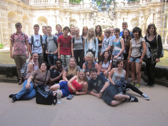 Drei Wochen wie im Fluge vergangenerstellt am: Donnerstag, 5 März, 2015Am 10.Juni war es endlich soweit – unsere amerikanischen Gäste kamen zum Gegenbesuch nach Torgau. Die nächsten drei Wochen waren voller Pläne und Ideen, um die Zeit optimal zu nutzen und unseren Gastgeschwistern so viel wie möglich von Deutschland zu zeigen. Integriert in das Familienleben, lernten sie unsere Gewohnheiten, Tagesabläufe und Interessen besser kennen. Auch wenn die amerikanischen Schüler nicht deutsch sprechen, gab es keine Probleme im Alltag. Die drei Wochen waren voller spannender und abwechslungsreicher Aktivitäten. Es gab Ausflüge nach Dresden (Bild 1), Berlin und Weimar. Außerdem fuhren wir in die Sächsische Schweiz, nach Rathen, um „Drei Haselnüsse für Aschenbrödel“ zu sehen. Dies war ein besonderer Höhepunkt und konnte unseren Gästen ein Stück deutscher Kultur nahebringen. Natürlich spielte auch die Schule eine große Rolle. Obwohl die Amerikaner bereits in den Ferien sind, nahmen sie regen Anteil am Unterricht des JWG. Ein Tag war, in langer Tradition, wieder der Grundschule Promenade gewidmet. Nach einem Ausflug in die GS stellten Grundschüler und amerikanische Gäste kleine Programme in der Aula des JWG vor, um sich gegenseitig eine Freude zu machen (Bild 2). Abgeschlossen wurde der traditionell mit der Übergabe von kleinen Zuckertüten an die Amerikaner. Vielen Dank an die GS Promenade und besonders Frau Zimmermann, die alles liebevoll organisiert hatte. Da wir gemeinsam an einem Projekt zu Recycling arbeiten, führte uns eine Exkursion nach Eilenburg zu STORA ENSO (Bild 3). Dort konnten wir hautnah den Weg des Papiers aus der blauen Tonne zu recyceltem Zeitungspapier verfolgen. Vielen Dank der ATO Torgau für die Organisation der Exkursion sowie den Guides von STORA ENSO, die uns sachkundig führten und alle Fragen beantworteten. Im Jugendbildungswerk Wintergrüne sprachen wir über Werte und den Sinn des Lebens. In verschiedenen spielerischen Aktivitäten konnten die amerikanischen Gäste spüren, wie wichtig die Gemeinschaft ist. Dank an Frau Senftleben für ihre Anregungen und Ideen. Natürlich gilt auch allen deutschen Eltern ein großer Dank für die Unterstützung des Programms. Sie unternahmen viele Ausflüge an den Wochenenden und zeigten den Gästen Wittenberg, den Spreewald oder sogar die Ostsee. Auch sportliche Aktivitäten wie Kletterwald und Bowling stärkten das Gemeinschaftsgefühl. Nicht vergessen werden sollten die beiden amerikanischen Lehrerinnen Dr. Purdy und Mrs. Crowley, ohne die der Austausch nicht möglich wäre. Deshalb gebührt ihnen unsere besondere Wertschätzung. Alles in allem vergingen die drei Wochen viel zu schnell und ein tränenreicher Abschied stand am Ende der gemeinsamen Zeit. J. Henke, G. Klemm JWG |