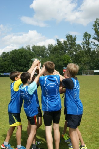 Super! Und wieder geht’s nach Chemnitz!erstellt am: Freitag, 6 März, 2015Leichtathletik/ Jugend trainiert für Olympia Regionalfinale Taucha Die Freude war riesengroß, denn innerhalb einer Woche holten sich die Jungs des Leichtathletik-Teams vom Johann Walter Gymnasium Torgau im Bundeswettbewerb der Schulen „Jugend trainiert für Olympia“ zwei Siegerpokale! Am vergangenen Mittwoch wurde das Regionalfinale Leipzig „Jugend trainiert für Olympia“ in der Leichtathletik im Stadion „Kriekauer Straße“ in Taucha ausgetragen. Die Mädchen (2.Platz) und Jungen (1.Platz) der WKIV (5.-7. Klassen) des JWG und die Jungs WKIII Oberschule Mockrehna (1.Platz) hatten sich zum Bereichsfinale in Eilenburg dafür qualifiziert. Es ist ein Mannschaftswettbewerb mit den Disziplinen 50m, 800m, Weit - und Hochsprung sowie Ballwurf (200g) und einer 4x50m Staffel. Jeder Sportler kann in maximal drei Disziplinen eingesetzt werden und es gibt in jeder Disziplin drei Startplätze pro Schule. Die zwei besten Leistungen jeder Mannschaft fließen in das Endergebnis ein. Es musste um jede Sekunde und jeden Zentimeter gekämpft werden, denn das große Ziel hieß wie im Vorjahr das Landesfinale in Chemnitz. Nur die Siegermannschaften können dort am 9.Juli starten. Starke Konkurrenz für die Sportler/innen vom Johann-Walter-Gymnasium (Bild 1) und der Oberschule Mockrehna kamen aus Taucha, Leipzig, Brandis, Borna, Frohburg und Zwenkau. Alle drei Mannschaften aus dem Bereich Torgau hatten auf Grund von Absagen mit Umstellungsproblemen zu kämpfen. Umso erfreulicher waren die Einsatzbereitschaft und der Siegeswille bei allen Teilnehmern, auch wenn sie nicht in ihrer Spezialdisziplin Punkte sammeln sollten! Bei den Jungs zeichnete sich in beiden Wettkampfklassen ein Zweikampf mit den Mannschaften vom Geschwister-Scholl Gymnasium Taucha ab! Es war ein „Kopf an Kopf - Rennen“ der Teams in beiden Altersklassen. Die jungen Leichtathleten vom JWG der WKIV siegten in der Endabrechnung auf Grund ihrer deutlicheren Ausgeglichenheit in allen sechs Disziplinen mit 5259 Punkten (Bild 2). Dazu erzielten neue persönliche Bestleistungen: Lucas Kentsch (50m 6,9 sec.), Bastian Pavlas (Ball 50,0 m), Julius Döbelt (Weit 4,46 m) sowie die 4 X 50 m Staffel in 27,30 Sekunden. (Kentsch, Freymuth, Döbelt, Pavlas) (Bild 3)! Die Mädchen vom JWG konnten trotz großer Bemühungen ihr Ergebnis von Eilenburg nicht ganz wiederholen. Großen Anteil beim Kampf um die Bronzemedaille hatten Sicilia Lippe (Hoch 1,31 m PBL, Ball 38,0 m PBL), Belina Rosch (Weit 4,33 m; Ball 38,50 m) und die 4 x 50 m Staffel in 29,30 Sekunden (Przyrembel, Quentmeier, Stokowsky, Pavlov). A. Garack Endstand: